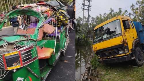 স্টাফ রিপোর্টার।। ভোলার বোরহানউদ্দিন উপজেলায় ট্রাক ও সিএনজিচালিত অটোরিকশার মুখোমুখি সংঘর্ষে এক নারীসহ তিনজন নিহত হয়েছেন। এ ঘটনায় আহত হয়েছেন আরও তিনজন। রোববার (২৮ ডিসেম্বর) দুপুরে উপজেলার মানিকার হাট বাজার সংলগ্ন এলাকায় এ দুর্ঘটনা ঘটে।…